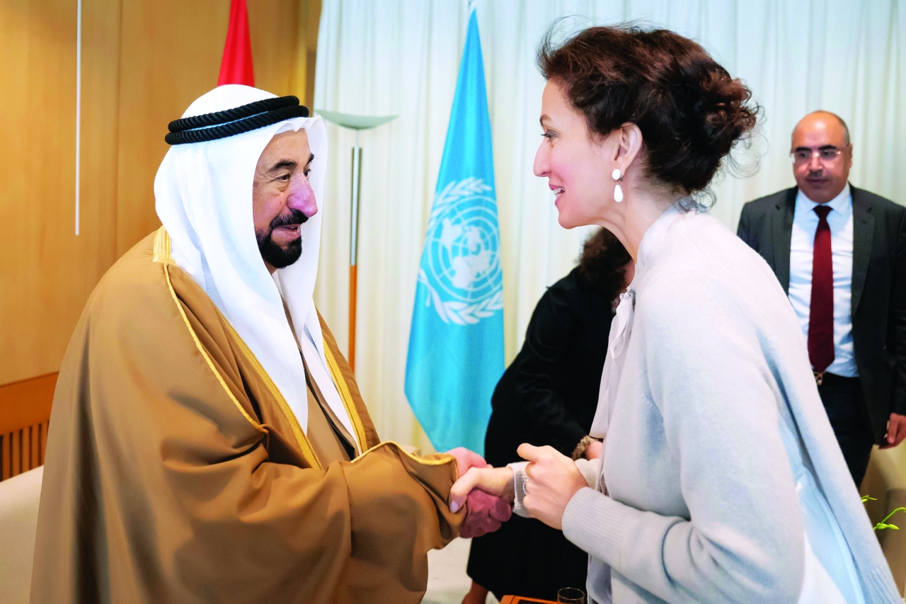 وتبادل صاحب السمو حاكم الشارقة، الأحاديث الودية مع مديرة اليونيسكو في المجالات ذات الشأن العلمي والثقافي، واطلع سموه من مديرة اليونيسكو، على أنشطة المنظمة في مجالات التربية والعلوم والثقافة، ومن ضمنها، احتفالات المنظمة باليوم العالمي للغة العربية.