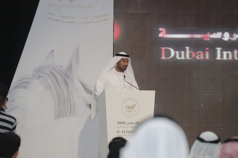ووجه خلال كلمته التحية إلى سمو الشيخ حمدان بن راشد آل مكتوم نائب حاكم دبي وزير المالية، وذلك لجهود سموه في تعزيز مكانة الجواد العربي والاحتفاظ بدوره في التراث والتاريخ، مشيداً بدوره في تنظيم البطولات المرموقة وجهوده لإحياء تراث عريق وأصيل للترويج السياحي.