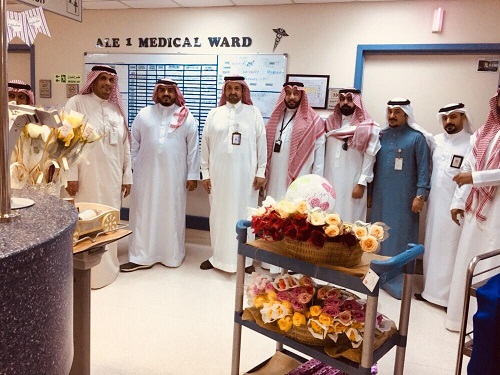وقد قام مساعد المدير التنفيذي للخدمات الطبية المدير الطبي الدكتور عباس الشيخ برفقة عدد من مسؤولي ومدراء كافة الأقسام بالمستشفى بجولة معايدة على جميع الموظفين والمرضى بكافة أقسام المستشفى وخاصة أقسام التنويم وقدم التهنئة للمرضى المنومين بمناسبة عيد الفطر المبارك .