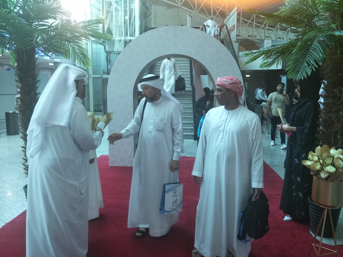وقام فريق عمل من مطار الشارقة الدولي باستقبال الحجاج بكل حفاوة، متمنين لهم حجاً مبروراً وسعياً مشكوراً، فيما قاموا بتوزيع الهدايا عليهم، ووفروا لهم كافة وسائل الراحة.