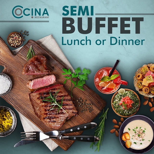 ويمتاز مطعم “كوسينا” بأجوائه الراقية والهادئة وتصاميمه الدافئة وتجاربه الذوقية الفاخرة المتوفرة على مدار اليوم. ومن خلال عرض سيمي- بوفيه يمكن للضيوف الاستمتاع بتشكيلة واسعة من الأطباق الشهية والتي تتضمن المقبلات الباردة والساخنة، والشوربات المختارة والسلطات المتنوعة. بالإضافة إلى الحلويات اللذيذة والفاكهة الطازجة والكعك. وتجدر الإشارة إلى أن هذا العرض الحصري مستمر حتى تاريخ 30 سبتمبر.