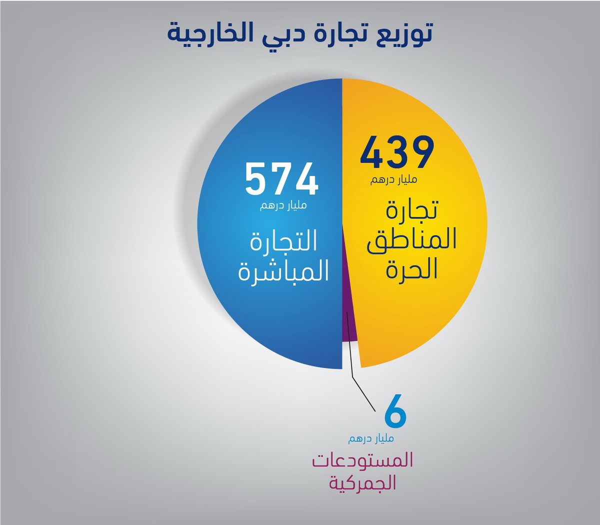 وارتفعت قيمة تجارة دبي الخارجية بنحو 966 مليار درهم، حيث حققت قيمة الصادرات نمواً بنسبة 23% لتصل إلى 118 مليار درهم وارتفعت قيمة إعادة التصدير بنسبة 4% إلى 312 مليار درهم وقيمة الواردات بنسبة 3% إلى 589 مليار درهم.