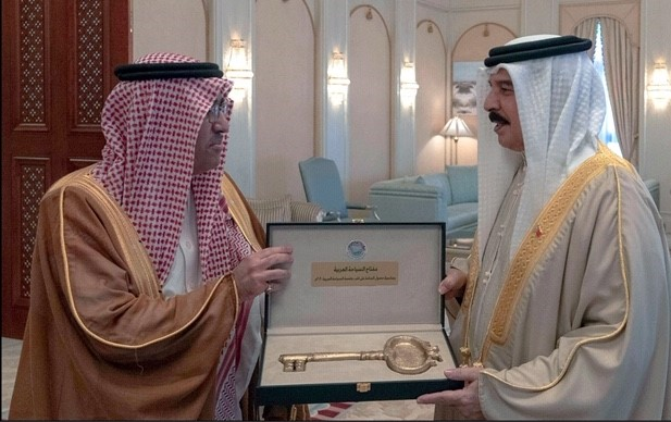 استقبل حضرة صاحب الجلالة الملك حمد بن عيسى آل خليفة عاهل البلاد المفدى هذا اليوم معالي الدكتور بندر بن فهد آل فهيد رئيس المنظمة العربية للسياحة والوفد المرافق لمعاليه ، وذلك للسلام على جلالته بمناسبة زيارته للمملكة، حيث تشرف بتسليم جلالة الملك المفدى مفتاح السياحة العربية لعام 2020م، وذلك تقديراً وعرفاناً من المنظمة لدور جلالته ودعمه لتعزيز كافة أوجه التعاون المشترك بين مملكة البحرين والمنظمة في قطاع السياحة وبمناسبة اختيار المنامة عاصمة للسياحة العربية لعام 2020.