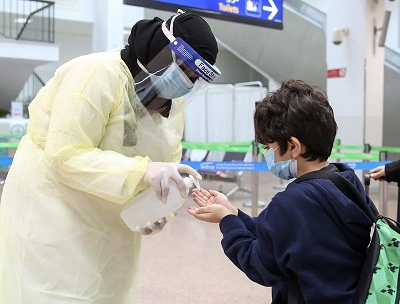 وخصصت وزارة الصحة نقطة فحص يتم من خلالها مرور جميع الركاب القادمين لأجهزة الكاميرات الحرارية الإلزامية للتأكد من سلامة المسافرين ، وعند الاشتباه بوجود حالة بين الركاب يتم عزل الراكب عن باقي الركاب ومن ثم تفعيل المسار الآمن لنقل الحالة ، كما يلزم على الركاب تعقيم اليدين قبل البدء في إجراءات الجوازات وبصمة الدخول ، وفي منطقة الجمارك يتم المحافظة على مسافة “1.5م” على الأقل بين موظف الجمارك والراكب .