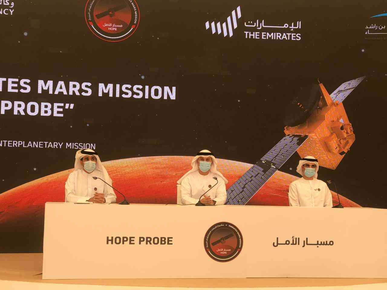انطلق صباح اليوم في مركز محمد بن راشد للفضاء، المؤتمر الصحفي الخاص بعد إطلاق #مسبار_الأمل بحضور معالي د. أحمد بالهول الفلاسي وزير دولة لريادة الأعمال والمشاريع الصغيرة والمتوسطة وحمد عبيد المنصوري، رئيس مجلس إدارة مركز محمد بن راشد للفضاء وعمران شرف، مدير مشروع الإمارات لاستكشاف المريخ.