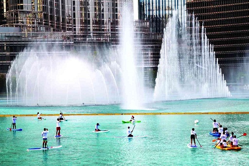 شهدت بحيرة برج خليفة في بوليفارد محمد بن راشد أول من أمس، تظاهرة رياضية رائعة في قلب أرقى كيلومتر في العالم تمثلت في كرنفال قوارب التجديف «واقف» ضمن مبادرة نادي دبي الدولي للرياضات البحرية «نحن نجدف من أجل دبي»، وسجل الحدث مشاركة أكثر من 80 رياضياً ورياضية من محبي رياضة التجديف والرياضات البحرية والمغامرة من 30 دولة حول العالم، وتقدم المشاركين نخبة من محبي الرياضيات البحرية ونجوم الرياضة، حيث شارك وللمرة الثانية في الفعاليات نصر النيادي رئيس اتحاد الإمارات للرياضات الجوية وعدد كبير من أبناء الجاليات المقيمة ومحبي رياضات المغامرة مثل العداءة منال رستم المتخصصة في تسلق المرتفعات ومتسابقة كايت سيرف سهي إسماعيل.
