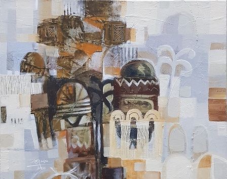 كما تحدث الفنان مهدي عقيلي بقولة:هناك بين عطفات الحنين وثنيات الاقمشة وحبال الانتظار يقف الزمن بعكس الاتجاه يوازي ركن المكان ليأوي اليه في ظنه ركن شديد متحفظ يستر واجهة الحياة في مخيلة العاجز عن رد صوادف العبور الى مأمن رغم ظلامه واقتباس نوره البسيط الخارج من منشور الغسيل العالق في نسمات وهدوء المكان من بينها ومنها اقتبست معطيات لعناصر العمل لعلي اصل الى بيان ذلك الركن من نور المنشور على الحبال فكانت هذه النتائج بمقاس ٨٠ × ٨٠ باللوان الاكريلك على خامة الخيش ليعطيني حس ما عشته وجمال مارأيته.