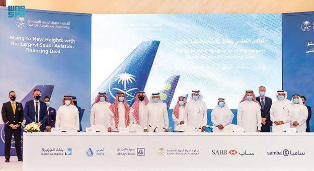 وقعت المؤسسة العامة للخطوط الجوية العربية السعودية اتفاقية تمويل مع ستة بنوك محلية بقيمة 11.2 مليار ريال سعودي (3 مليارات دولار أميركي)، تُعد الأضخم حجماً في تاريخ قطاع الطيران في المملكة، وذلك تفعيلاً لخططها الاستراتيجية الرامية إلى توسيع أسطول طائراتها.