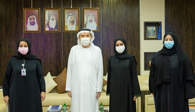 جاء ذلك خلال استقبال معاليه أمس بمكتبه في مقر الجامعة بمدينة العين , للحاصلات على دبلوم إسعاد المتعاملين في جامعة الإمارات، وهن : مريم الكعبي -مدير مركز إسعاد الطلبة- مريم خذيل رئيس قسم التميز المؤسسي، و إيمان الشامسي –مدير مكتب مدير جامعة الإمارات-.