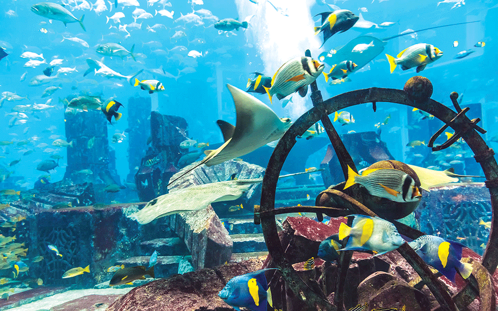 و بفضل قدرته على استيعاب 10 ملايين لتر من المياه يحتضن “دبي أكواريوم” المكونات الساحرة لقاع المحيط ومئات الأصناف من الكائنات التي تعيش في البيئات البحرية المختلفة حول العالم.