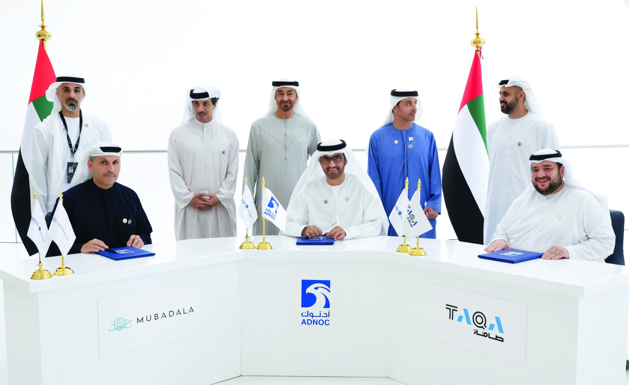 وقّع الاتفاقية التي تمت بجناح الإمارات في معرض «إكسبو 2020 دبي»، معالي الدكتور سلطان بن أحمد الجابر، وزير الصناعة والتكنولوجيا المتقدمة، العضو المنتدب والرئيس التنفيذي لمجموعة «أدنوك»، وخلدون خليفة المبارك، العضو المنتدب، الرئيس التنفيذي لمجموعة «مبادلة»، ومحمد حسن السويدي، رئيس مجلس إدارة شركة طاقة.