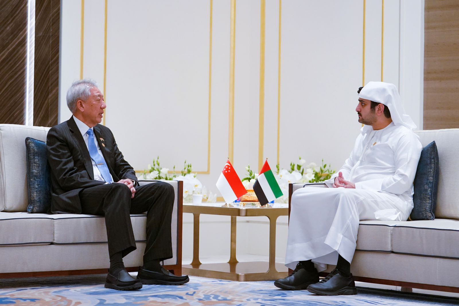 استقبل سمو الشيخ مكتوم بن محمد بن راشد آل مكتوم، نائب حاكم دبي نائب رئيس مجلس الوزراء وزير المالية، تيو تشي هين، كبير الوزراء والوزير المنسق للأمن القومي في جمهورية سنغافورة الصديقة، والذي يزور الدولة حالياً للمشاركة في الاحتفال باليوم الوطني لبلاده في “إكسبو 2020 دبي”.