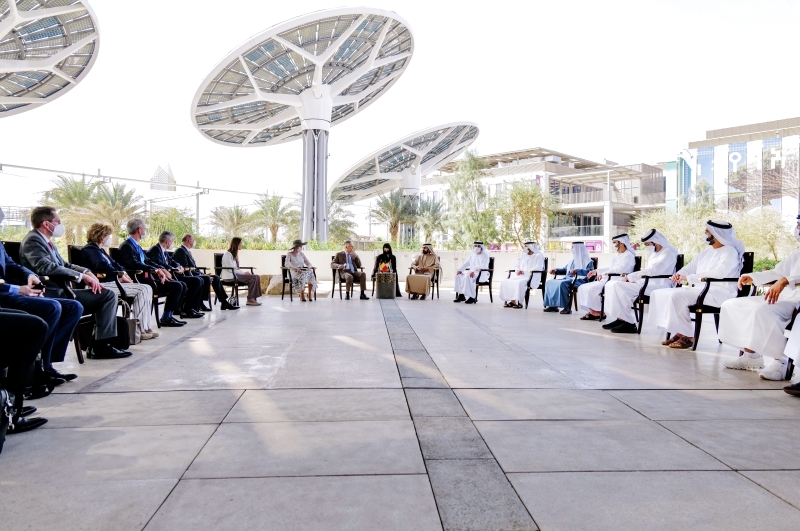 وأكد الجانبان أهمية نشر قيم السلام والتعاون في المنطقة والعالم، وهي القيم التي طالما أعلتها دولة الإمارات وتعمل، في ضوء سياستها القائمة على الانفتاح والتعايش، على ترسيخها بتشجيع الحوار البنّاء وتهيئة المجال أمام اكتشاف المزيد من قنوات التعاون الهادف إلى تمكين العبور إلى مستقبل أفضل، وهو ما يتضح من خلال الحدث العالمي الكبير الذي تستضيفه الدولة منذ أكتوبر الماضي وهو إكسبو 2020 دبي، بما يمثله كمنصة حيوية تلتقي من خلالها 192 دولة للتواصل وتبادل الأفكار من أجل غد ينعم فيه الجميع بأسباب الاستقرار والتقدم والرخاء.