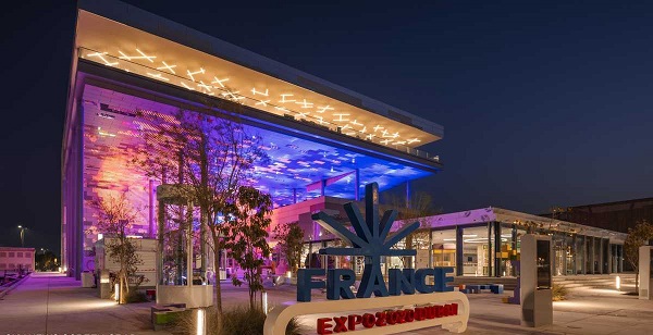 ويتميز الجناح الفرنسي، الكائن في منطقة التنقل في إكسبو 2020 دبي، بواجهته الخارجية التي تمتد على مساحة 2700 متر مربعة مغطاة بألواح ضوئية.