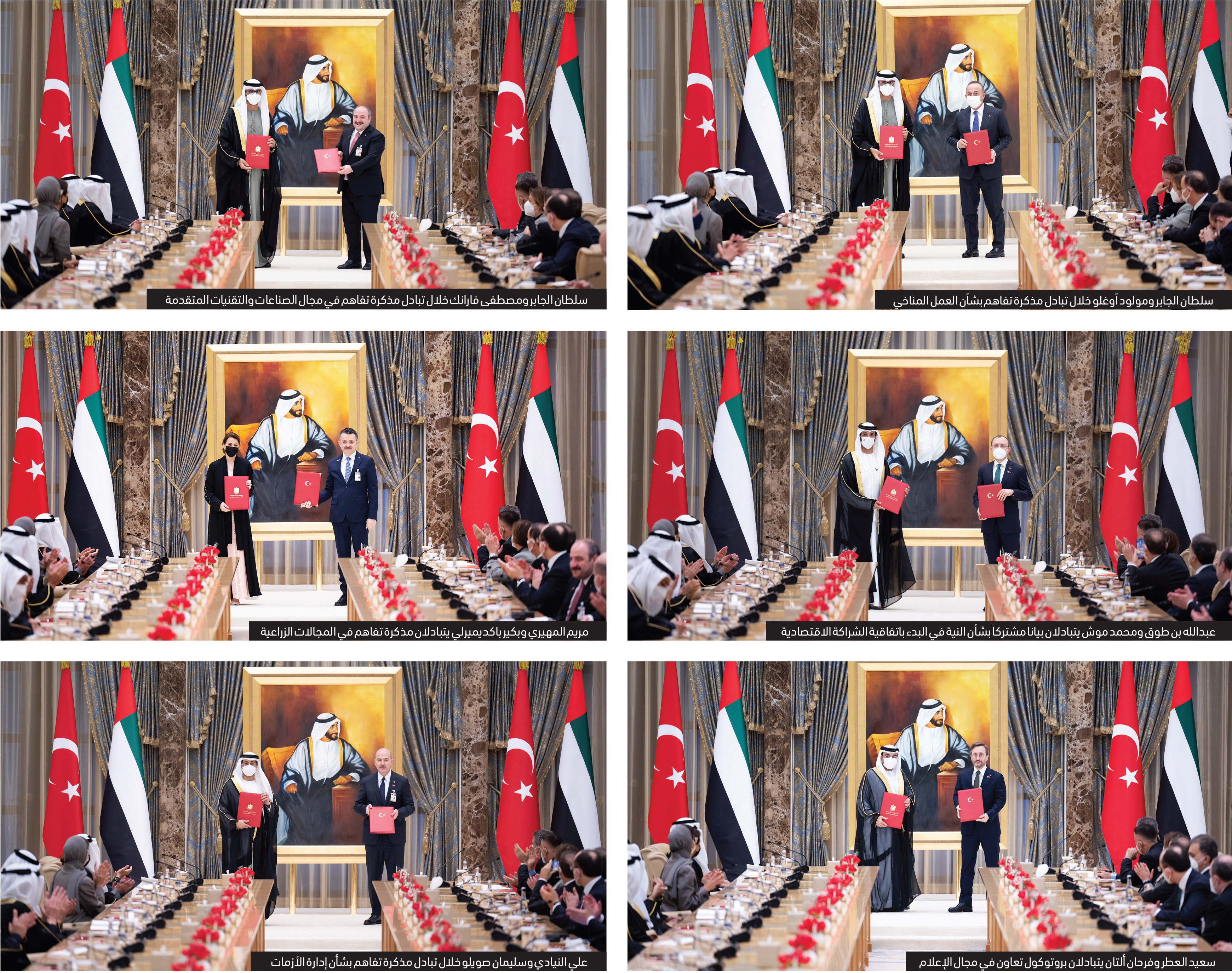 5 – بيان مشترك بشأن النية في البدء باتفاقية الشراكة الاقتصادية الشاملة بين دولة الإمارات والجمهورية التركية تبادلها من جانب الإمارات معالي عبدالله بن طوق المري وزير الاقتصاد ومن جانب تركيا محمد موش وزير التجارة.