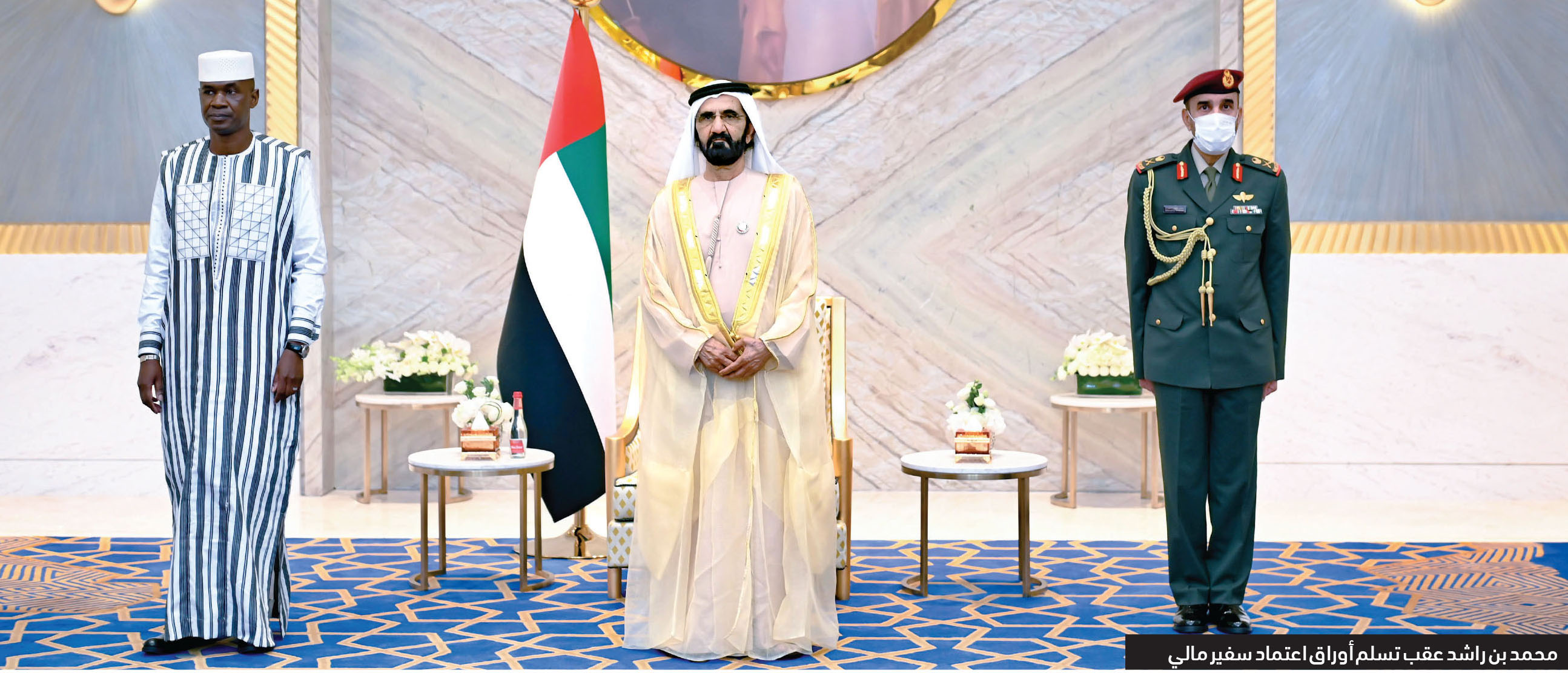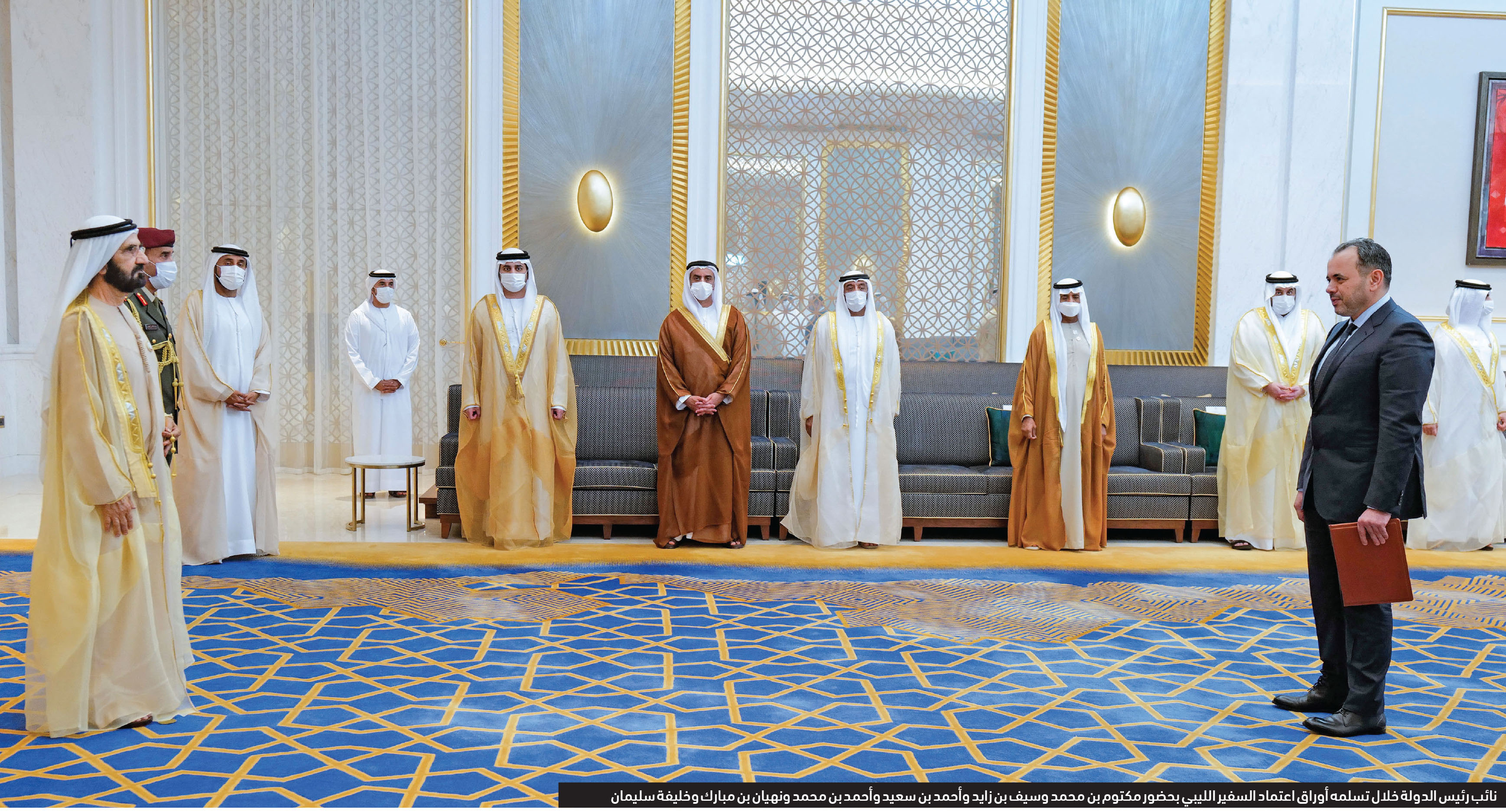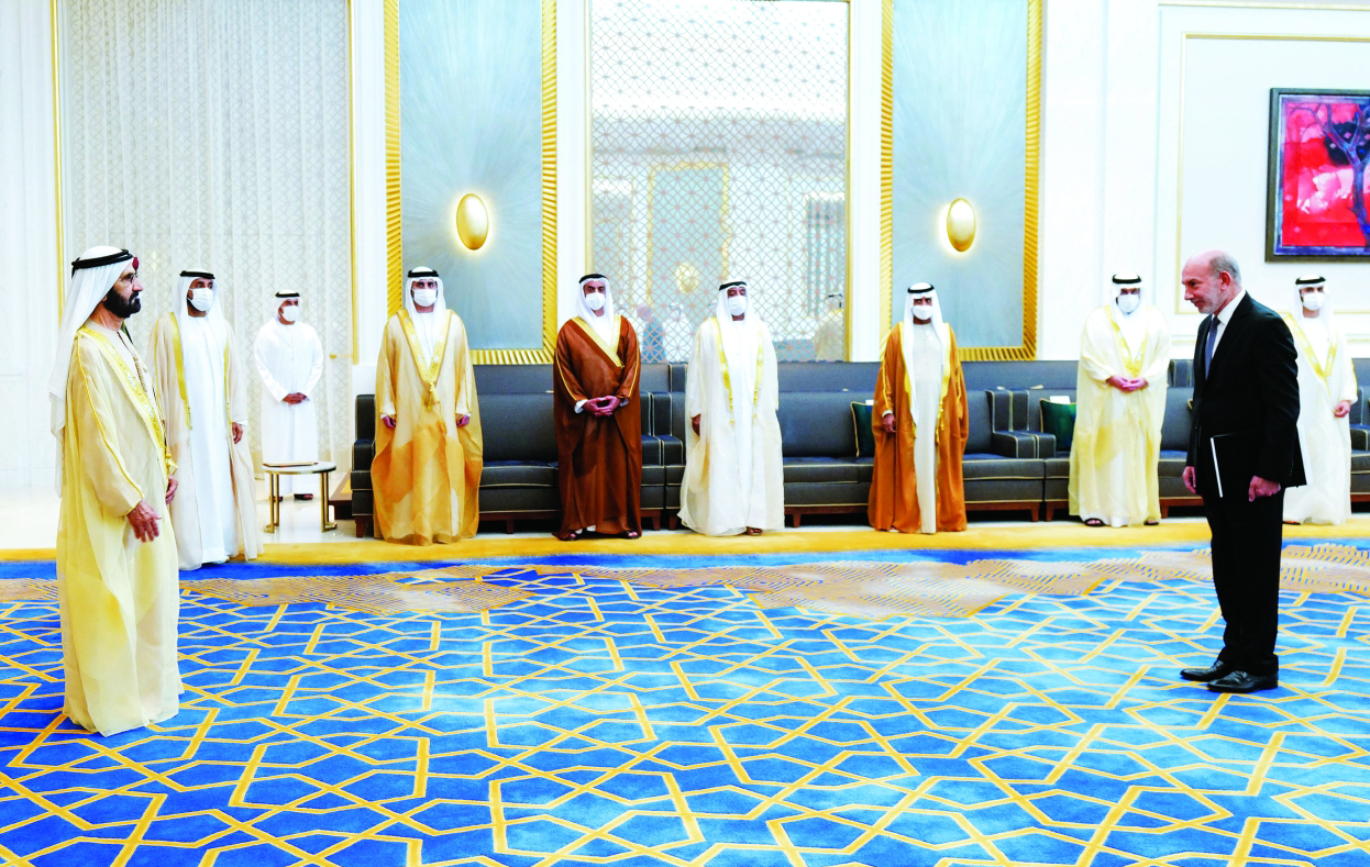جاء ذلك خلال تسلم صاحب السمو الشيخ محمد بن راشد آل مكتوم، رعاه الله، بحضور سمو الشيخ مكتوم بن محمد بن راشد آل مكتوم نائب حاكم دبي نائب رئيس مجلس الوزراء وزير المالية، والفريق سمو الشيخ سيف بن زايد آل نهيان نائب رئيس مجلس الوزراء وزير الداخلية أوراق اعتماد سفراء جدد معينين لدى الدولة لعدد من الدول الشقيقة، والصديقة.