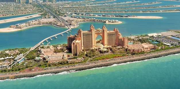 أما منتجع أتلانتس النخلة ويحتوي على حدائق مائية وحدائق بحرية كما أنه يقع على جزر إصطناعية.