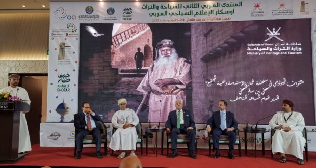 على هامش حضور المنتدى العربي الثاني للسياحة والتراث في محافظة ظفار بسلطنة عمان.عقدت حلقة نقاشية بعنوان “سلطنة عُمان ارض الأصالة والثقافة والتراث كوجهة سياحية مستدامة”، ضمن فعاليات المنتدى العربي الثاني السياحة والتراث وادار الحلقة الدكتور سعيد البطوطي المستشار الاقتصادي لمنظمة السياحة العالمية، الذي أكد أن سلطنة عُمان تتمميز بعددد المقومات السياحية أبرز انسان عُمان الذي يشكل عنوان الحراك السياحي الجاذب نظرا لطبيعته والتزامه بعاداته وتقاليده وتمسكه بلغته العربية وملابسه وموسيقاه وفنونه الشعبية.