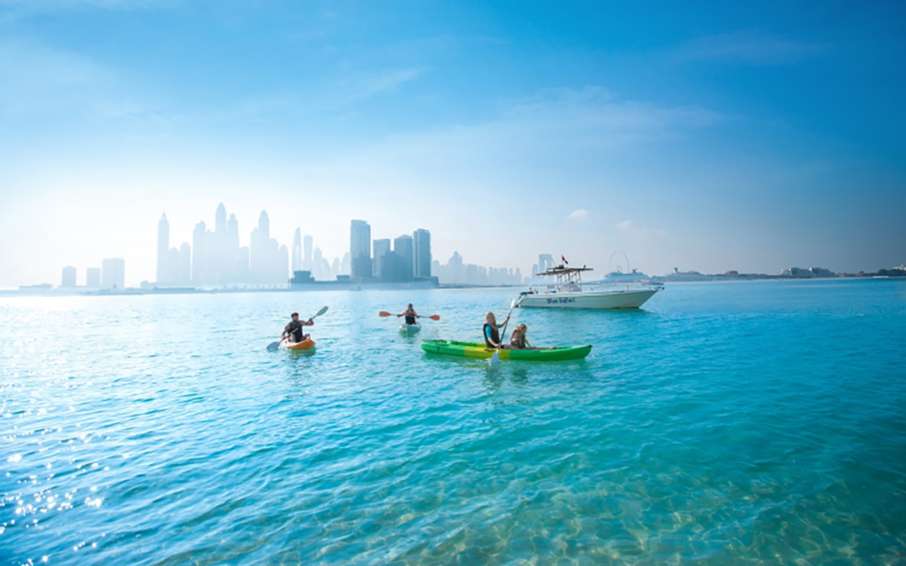 وأضاف الصلبي: «نوفر باقة من الخدمات والرياضات المائية في نخلة جميرا، مثل تأجير المعدات والتدريب على الرياضات المائية، والإبحار وركوب الأمواج، وتعد جولات قوارب الكاياك وألواح التجديف من الخيارات التي يفضلها زوار دبي، للاستمتاع بأشهر معالمها»