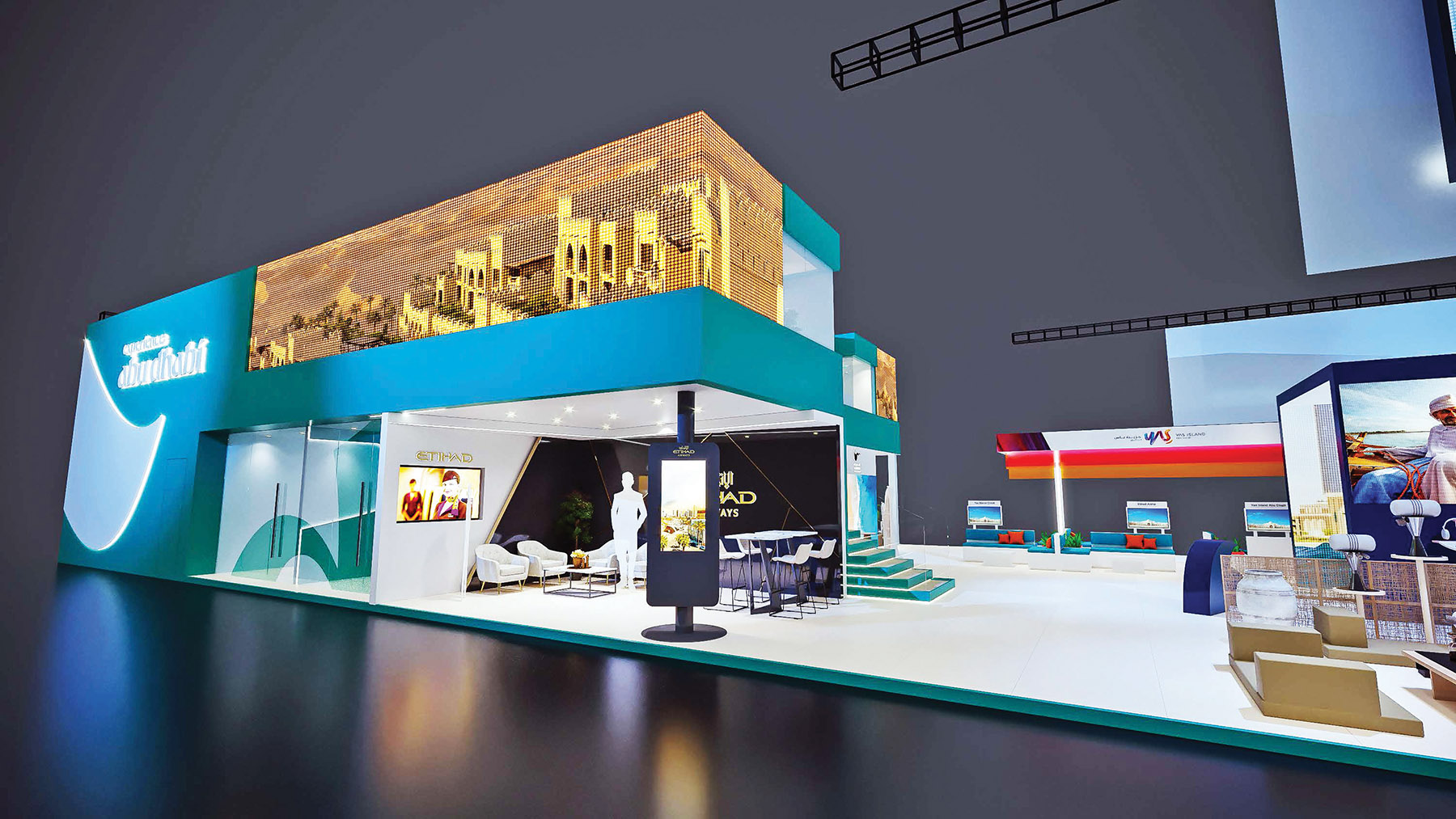 علاوة على ذلك، يفتح الجناح آفاقاً واسعة للتعرف عن قرب على أهم معالم الجذب في جزيرتي ياس والسعديات ومنطقتي العين والظفرة، حيث ترحب الإمارة بالجميع لاكتشاف تجاربها الفريدة المتنوعة على مدار العام وفقاً لاهتماماتهم وتطلعاتهم الشخصية، من التراث الثقافي العريق، والشواطئ الطبيعية الخلابة، وأفضل فنون الترفيه العائلي، إلى البطولات الرياضية الدولية.