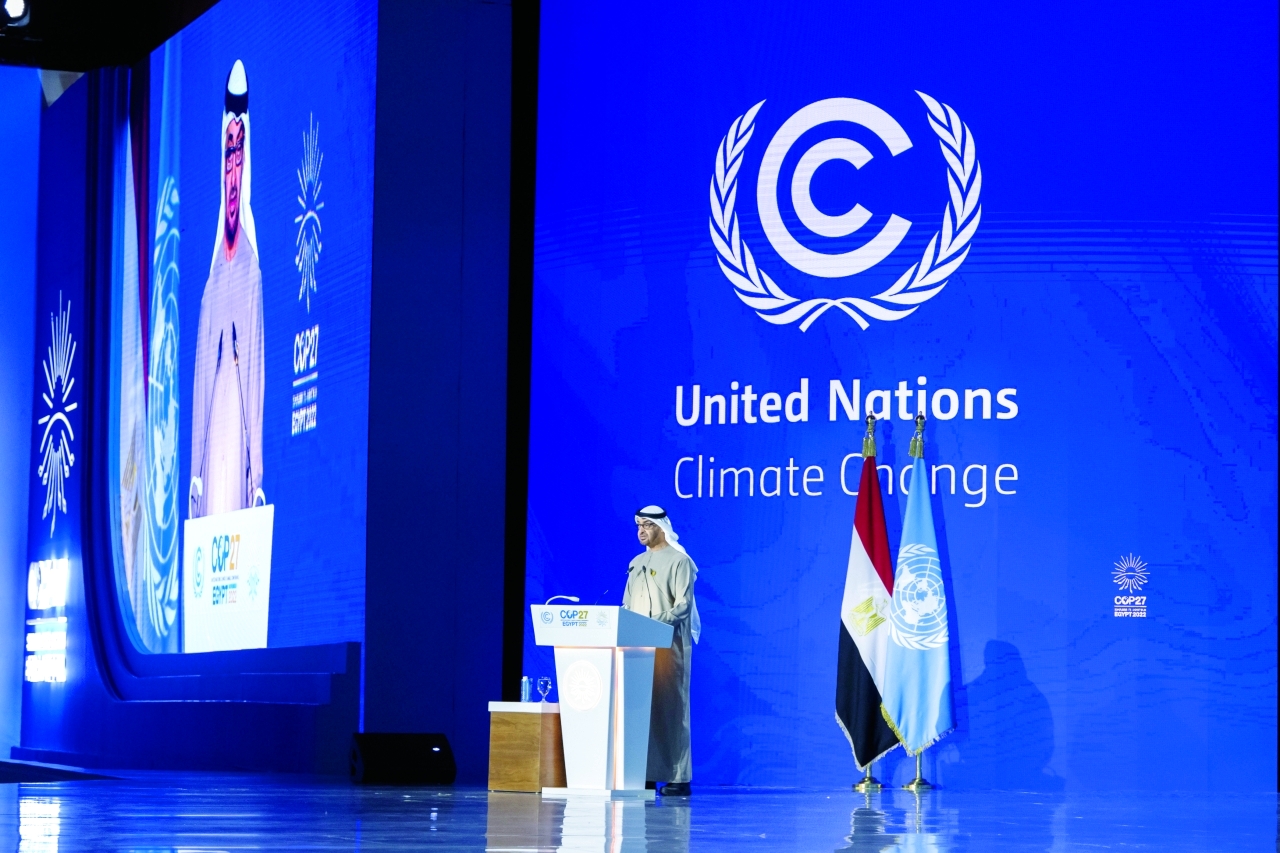 قال معالي الدكتور سلطان بن أحمد الجابر وزير الصناعة والتكنولوجيا المتقدمة المبعوث الخاص لدولة الإمارات للتغير المناخي: «إن كلمة صاحب السمو الشيخ محمد بن زايد آل نهيان رئيس الدولة، حفظه الله، أمام اجتماع قادة العالم ضمن فعاليات مؤتمر الأطراف في اتفاقية الأمم المتحدة الإطارية بشأن تغير المناخ COP27، في مدينة شرم الشيخ المصرية، رسمت رؤية واضحة لنهج دولة الإمارات الاستراتيجي في مجالات العمل المناخي والاستدامة، حيث أكد سموه أن العمل المناخي الفعال يسرّع فرص التنمية الاقتصادية والاجتماعية المستدامة».