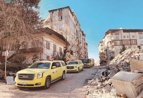واصل فريق البحث والإنقاذ السعودي مهامه وأعماله لمساعدة المتضررين في زلزال جمهورية تركيا لليوم الثامن في (46) موقعًا في (3) مدن تركية ضمن أعمال مركز الملك سلمان للإغاثة والأعمال الإنسانية، وأسهم في تحديد وانتشال العديد من الضحايا. ويضم الفريق المدرب وفق أعلى المستويات لمواجهة الحوادث والكوارث وتحقيق الدعم والإسناد الفاعل داخل المملكة و خارجها، نخبة من المنقذين، والأطباء، والمهندسين، والمسعفين، ومشرفي وسائل البحث (K9)، وفنيي الصيانة، وفنيي أنظمة الاتصالات، ومختصين بالأمن والسلامة وفق بناء تنظيمي يشمل أقسام الإدارة والعمليات والدعم اللوجستي والدعم الطبي ووحدة وسائل البحث، ومزود بآليات ومعدات فنية ومستلزمات طبية وأجهزة اتصالات ووسائل بحث (K9) ومواد إيوائية وخيام يتم شحنها في مركبات نقل مخصصة لذلك.