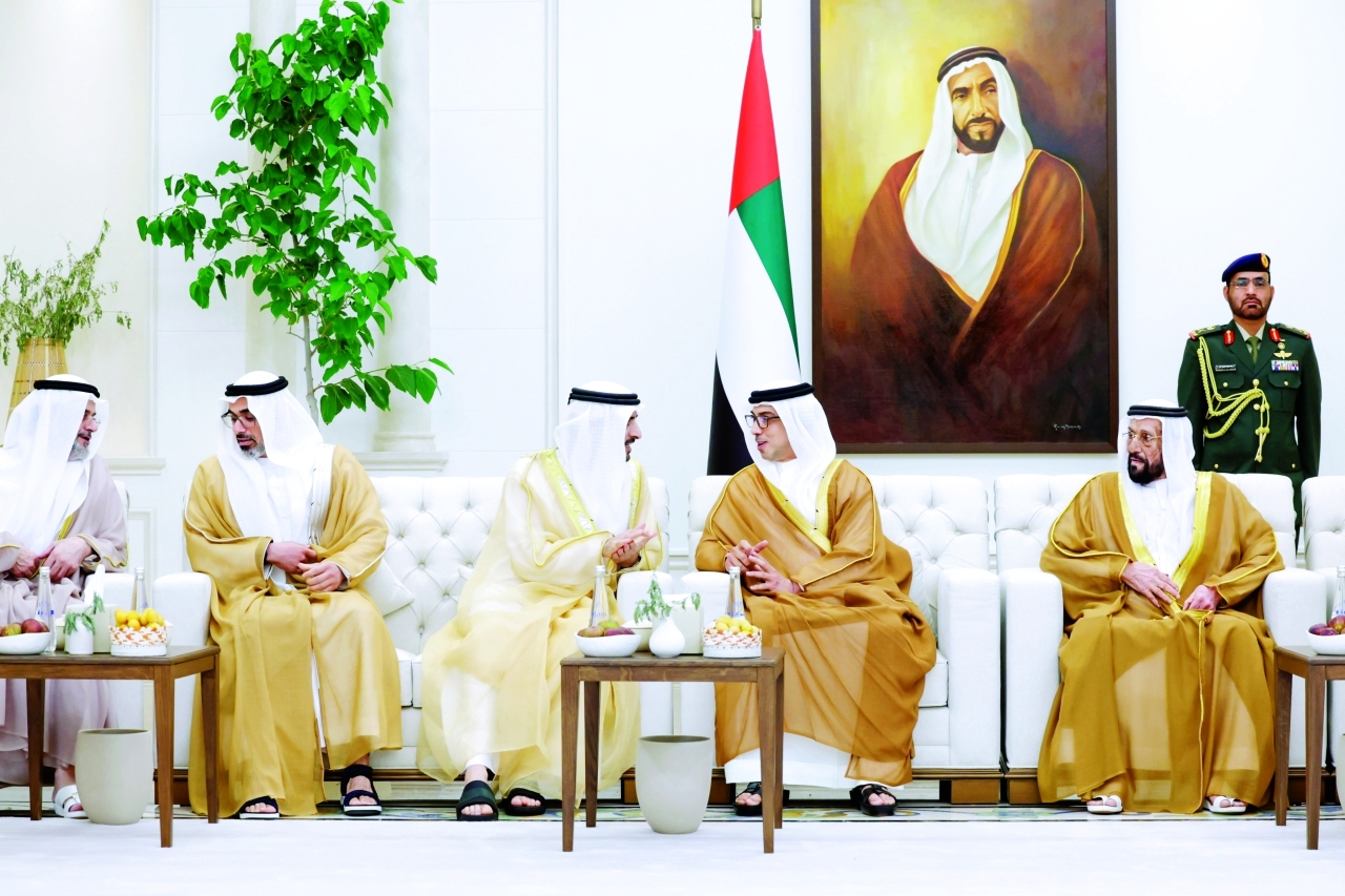 استقبل سمو الشيخ منصور بن زايد آل نهيان، نائب رئيس الدولة نائب رئيس مجلس الوزراء وزير ديوان الرئاسة، وسمو الشيخ خالد بن محمد بن زايد آل نهيان، ولي عهد أبوظبي، وسمو الشيخ هزاع بن زايد آل نهيان، نائب حاكم إمارة أبوظبي، وسمو الشيخ طحنون بن زايد آل نهيان، نائب حاكم إمارة أبوظبي، أمس في قصر المشرف، سمو أولياء العهود ونواب الحكام والشيوخ والمواطنين والضيوف المهنئين بمناسبة عيد الفطر المبارك.