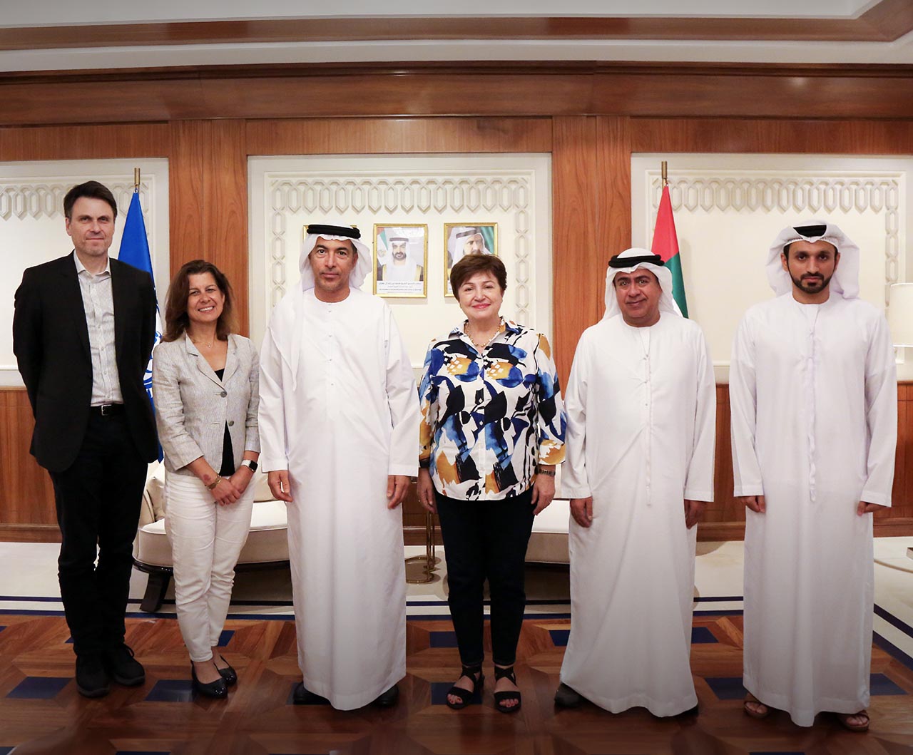 كما ناقش الجانبان مؤشرات التنمية المستدامة والنمو الاقتصادي ومستجدات النظام المالي لدولة الإمارات في ظل توقعات بأن يحافظ نمو الناتج المحلي الإجمالي للدولة في عام 2023 على مستوياته الجيدة، مدفوعا بنمو الناتج المحلي الإجمالي غير النفطي، وتوجه الدولة نحو إرساء دعائم نموذج الاقتصاد الجديد القائم على التنوع والمعرفة والابتكار والرقمنة، وما يميز النظام المالي للدولة من مرونة واستقرار رغم التحديات العالمية. واستعرض الطرفان، عدداً من المسائل المتعلقة بالوضع الاقتصادي الإقليمي والعالمي، وتوجهاته الحالية والمستقبلية، في ظل تداعيات التوترات الجيوسياسية، والتي أدت إلى تباطؤ النمو الاقتصادي وارتفاع التضخم وزيادة المخاطر التي تعوق التجارة وتدفقات رأس المال وغيرها.