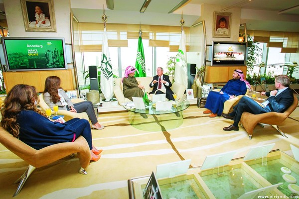 الأمير الوليد بن طلال بن عبدالعزيز آل سعود، رئيس مجلس إدارة شركة المملكة القابضة ومالك قناة العرب، يجتمع مع مايكل بلومبرغ، مؤسس ورئيس مجلس إدارة بلومبرغ Bloomberg في مقر شركة المملكة القابضة بالرياض.