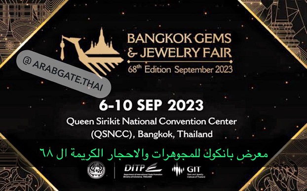 ينطلق معرض بانكوك للمجوهرات والأحجار الكريمة، فى دورته الـ 68 ،في 6-10 SEP 2023 الذي يعقد فى أحد المراكز بالعاصمة التايلندية بانكوك، فى واحد من أكبر معارض المجوهرات فى العالم، وقد يشهد المعرض أحدث إبداعات المصممين من جميع أنحاء العالم من حلى ومشغولات ذهبية وفضية ومجوهرات مرصعة بالأحجار الكريمة، وتنوعت التصاميم ما بين الكلاسيكية والمودرن مع إضفاء لمسات إبداعية، تلك التى تعبر عن مستوى عالٍ من الأناقة والرقى.