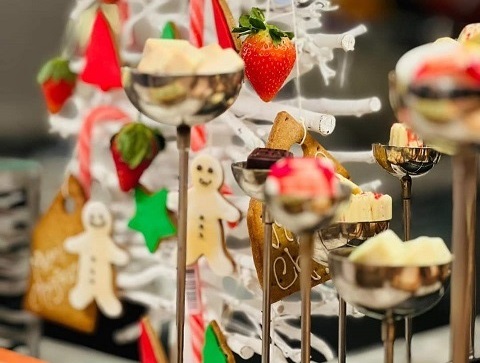 شاي الظهيرة الاحتفالي: يمكن للضيوف الاستمتاع بأجواء العيد الدافئة باحتساء كوب من شاي الظهيرة الاحتفالي مع تشكيلة مميزة من حلويات العيد الشهية وذلك من الساعة 3:00 عصرًا وحتى الساعة 7:00 مساءً، بسعر 249 درهم إماراتي للشخص الواحد.