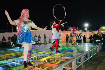 فيما تقدم على مسرح فعاليات ليالي المهرجان العديد من العروض الفنية التراثية والفلكلورية وعروض الاكروبات