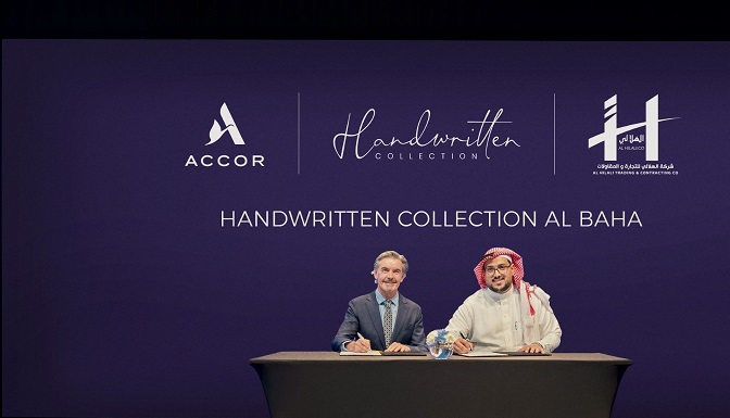 وتم توقيع اتفاقية مشروع مجموعة هاندريتن كوليكشن الباحة على هامش قمة مستقبل الضيافة بدبي بين شركة أكور ومجموعة الهلالي للتجارة والمقاولات. وشهدت الفعالية حضور دنكان أورورك، الرئيس التنفيذي لمنطقة الشرق الأوسط وأفريقيا وآسيا والمحيط الهادئ للعلامات الفاخرة والمتوسطة والاقتصادية في أكور؛ والسيد منصور عبدالله حسين الهلالي، المؤسس ورئيس مجلس الإدارة لمجموعة الهلالي للتجارة والمقاولات.