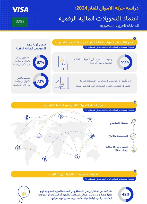 المدفوعات الرقمية هي أسرع وأكثر الطرق أماناً بالنسبة لمرسلي ومتلقّي التحويلات المالية في المملكة العربية السعودية، فيما شكلت عوامل سهولة الاستخدام والخصوصية والأمان المزايا الرئيسية للتحويلات المالية الرقمية