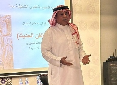 وتطرق عسيري على جهود جيل الفنانين الرواد واستشهد بالأمير خالد الفيصل، ود. عبدالحليم الرضوي، محمد السليم، صفية بن زقر، منيرة موصلي، ضياء، العبيد، الأعجم، حمّاس، البقشي، سيام السليمان وغيرهم، ومن تلاهم من الجيل الحالي عبدالله ادريس، محمد الرباط ياسر أزهر، فهد خليف الخزمري، أحمد حسين وغيرهم ’ وقد تفاعل الحضور الكريم بالمداخلات التي أثرت المحاضرة،