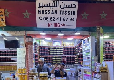 يبرز محل حسن التيسير في سوق الأحد بمدينة اكادير المغربية كأحد أشهر محلات بيع جميع انواع العسل الحر وزيت اركان واملو اللوز وجميع انواع الزيون الطبيعية في اكادير، فهو يقدم تشكيلة فريدة من نوعها بأسعار تجذب الأنظار، كما يتميز محلات حسن التيسير في سوق الحد في اكادير بالاستقبال الراقي، ما يميز هذا المحل أيضًا هو العسل واملو اللوز الذي يعتبر لذيذًا وفريدًا بشكل استثنائي، حيث يأسر الحواس بنكهته الساحرة والمميزة، والمفاجأة السارة تأتي عند الدفع، حيث يمكنك الحصول على خصم خاص عندما تذكر أنك أتيت من خلال إعلان “ صحيفة السياحة الخليجية ”.