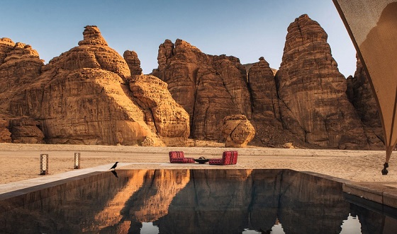 يمكن للضيوف الاسترخاء والاستمتاع بمنظر وادي عشار الشاسع من حوض السباحة الصخري، ليعيشوا تجربة لا مثيل لها من التواصل مع الطبيعة في هذا الملاذ الصحراوي الفريد.