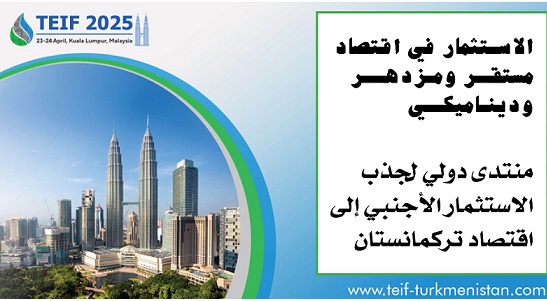 ينعقد المنتدى الدولي لجذب الاستثمارات الأجنبية إلى اقتصاد تركمانستان TEIF في العاصمة الماليزية كوالالمبور تحت شعار “استثمر في اقتصاد مستقر ومزدهر وديناميكي”، وذلك خلال الفترة من 23 إلى 24 أبريل، وبتنظيم الهيئات الحكومية “تركمان غاز” و”تركمان بيت” وغرفة
