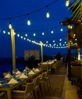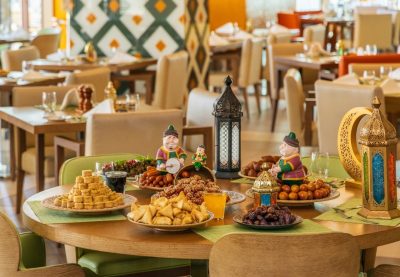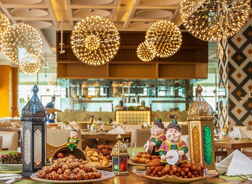 ويقدّم الفندق بوفيهاً فاخراً على ضفاف البحر والمسابح المحيطة به , ويضم مجموعة متنوعة من الأطباق العربية والعالمية المحضّرة بعناية لتلبي جميع الأذواق، مع ركن خاص للحلويات الشرقية والمشروبات الرمضانية التقليدية. وتكتمل الأجواء الرمضانية مع عزف العود و أنغام الموسيقى الشرقية الحية التي تضفي لمسة من السحر والدفء على الأمسية الرمضانية من وقت الافطار حتى السحور