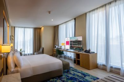 كما أن التصميم الداخلي للفندق يوازن بين الفخامة والحداثة، مما يوفر تجربة إقامة مريحة ومتميزة تدمج بين الراحة والرفاهية.