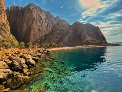 يتميز الشاطئ بالرمال الذهبية والمياه الزرقاء الصافية الدافئة، يطل الشاطئ على البحر الأحمر ويصطف على جانبيه أشجار النخيل الرائعة، وهو أحد أجمل الاماكن السياحية في نيوم، يُمكنك هناك الاستمتاع بغروب الشمس فوق جزيرة تيران في جو من الهدوء والاسترخاء.