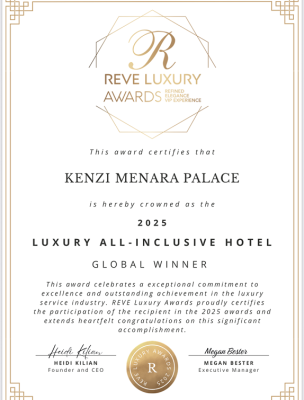 من خلال تتويجه كـ أفضل فندق شامل فاخر على مستوى العالم، يعيد كنزي منارة بالاس تعريف مفهوم “شامل كليًا”، من خلال تجربة متكاملة فاخرة تمزج بين الأناقة، والمأكولات الراقية، والرفاه، والخدمة الشخصية، دون أي تنازل عن الراحة أو الجودة.