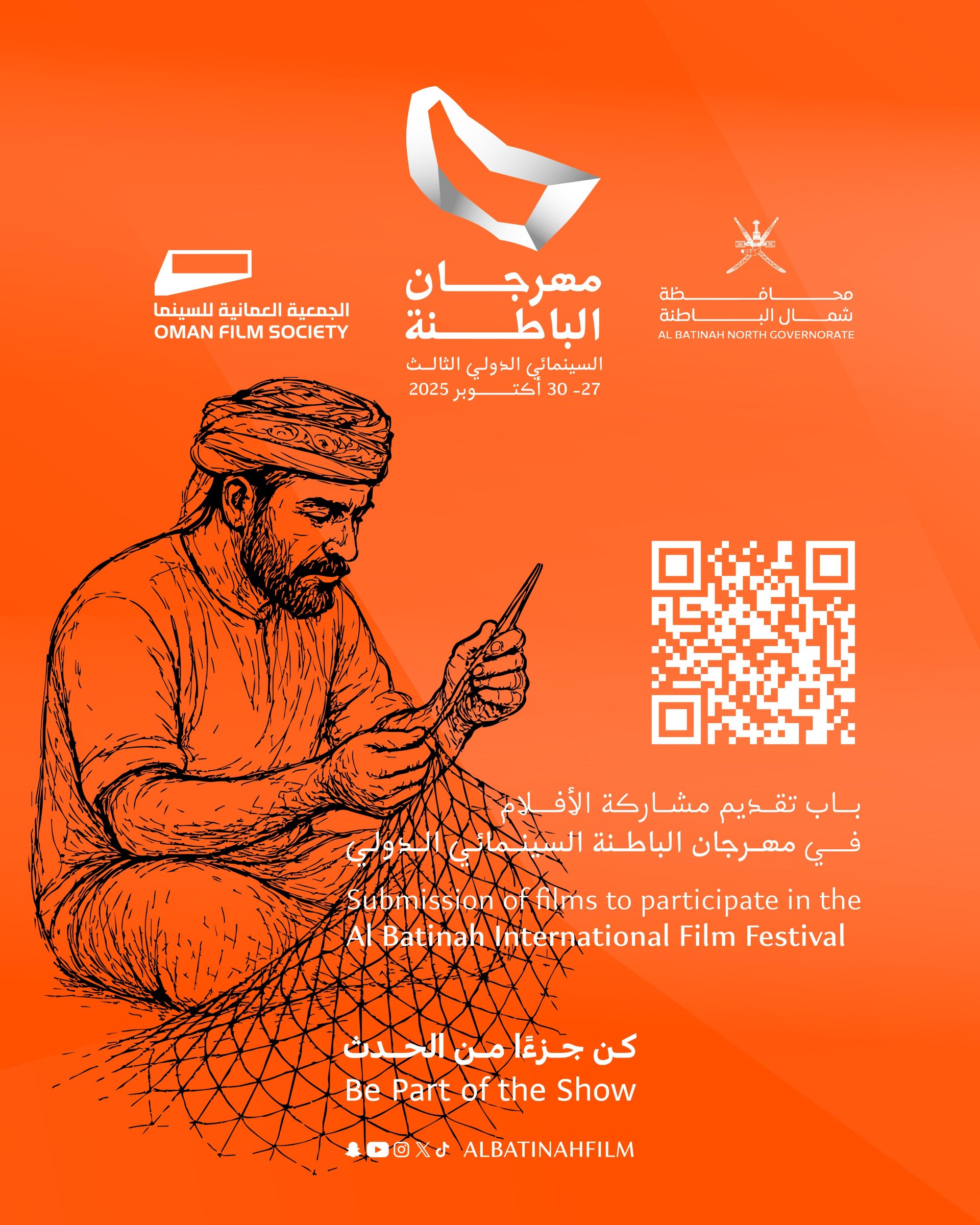تُعلن الجمعية العُمانية للسينما ومكتب محافظ شمال الباطنة عن فتح باب الترشّح للمشاركة في المسابقة الرسمية للدورة الثالثة من مهرجان الباطنة السينمائي الدولي، والتي ستُقام فعالياتها في سلطنة عُمان خلال الفترة من 27 إلى 30 أكتوبر 2025، في أجواء تحتفي بالإبداع وتعزز التواصل بين صُنّاع الأفلام والمهتمين بالشأن السينمائي.