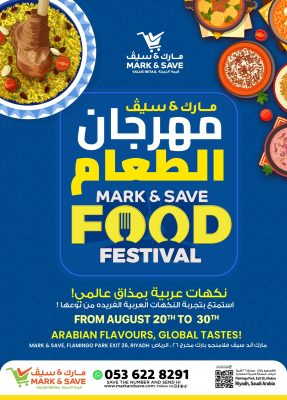 يعلن مارك آند سيف بكل فخر عن انطلاق مهرجان مارك آند سيف للطعام احتفالا بالطهي لمدة ١٠ أيام من ٢٠ إلى ٣٠ أغسطس ٢٠٢٥ في فرع مارك آند سيف فلامنجو بارك، مخرج 26، الرياض.