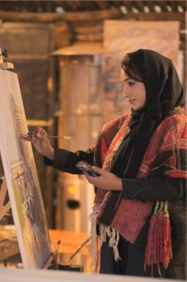 – وتلخص الفنانة نوال العمري حصيلة مشاركتها في فعاليات المتحف قائلة: شاركت لمدة ثلاثة أيام في الرسم أمام زوار المتحف، الذي اعتبره من أهم المتاحف الخاصة بالمملكة، بما يضمه من تحف وآثار ومقتنيات، فكانت تجربة رائعة بالنسبة لي.. ذلك أن الرسم في موقع ثراثي، ومتحف ذاخر بالكنوز والقطع الناردة الجميلة، يحفز الإلهام، ويفتح النوافذ لطاقة الإبداع الداخلي، فكان أن أخرجت أبدع ما داخلي، في لوحة أسعدني كثيرًا أنها وضعت في مقدمة المتحف.