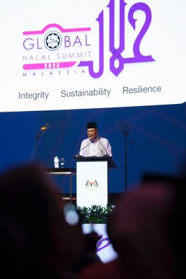 وأوضح أنور إبراهيم أن ماليزيا حصلت ما يقرب من 10,000 شركة، تُشكل أكثر من 80% منها شركات صغيرة ومتوسطة، على اعتماد من هيئة تطوير الثروات الماليزية (JAKIM) بناءً على امتثالها لمعايير الحلال الشاملة، وعالميا، اعترفت أكثر من 50 دولة بالعلامة التجارية الماليزية للحلال، فيما تتعاون هيئة تطوير الثروات الماليزية (JAKIM) مع أكثر من 80 هيئة معتمدة لإصدار شهادات الحلال من 45 دولة.