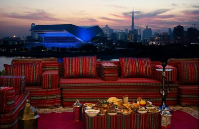 وتترافق الأمسيات مع عزف مباشر على آلة العود يضفي أجواءً من الأصالة والدفء، فيما تتوافر الشيشة عند الطلب لمن يرغب في استكمال تجربة الاسترخاء في أجواء الهواء الطلق المطلة على أفق دبي.